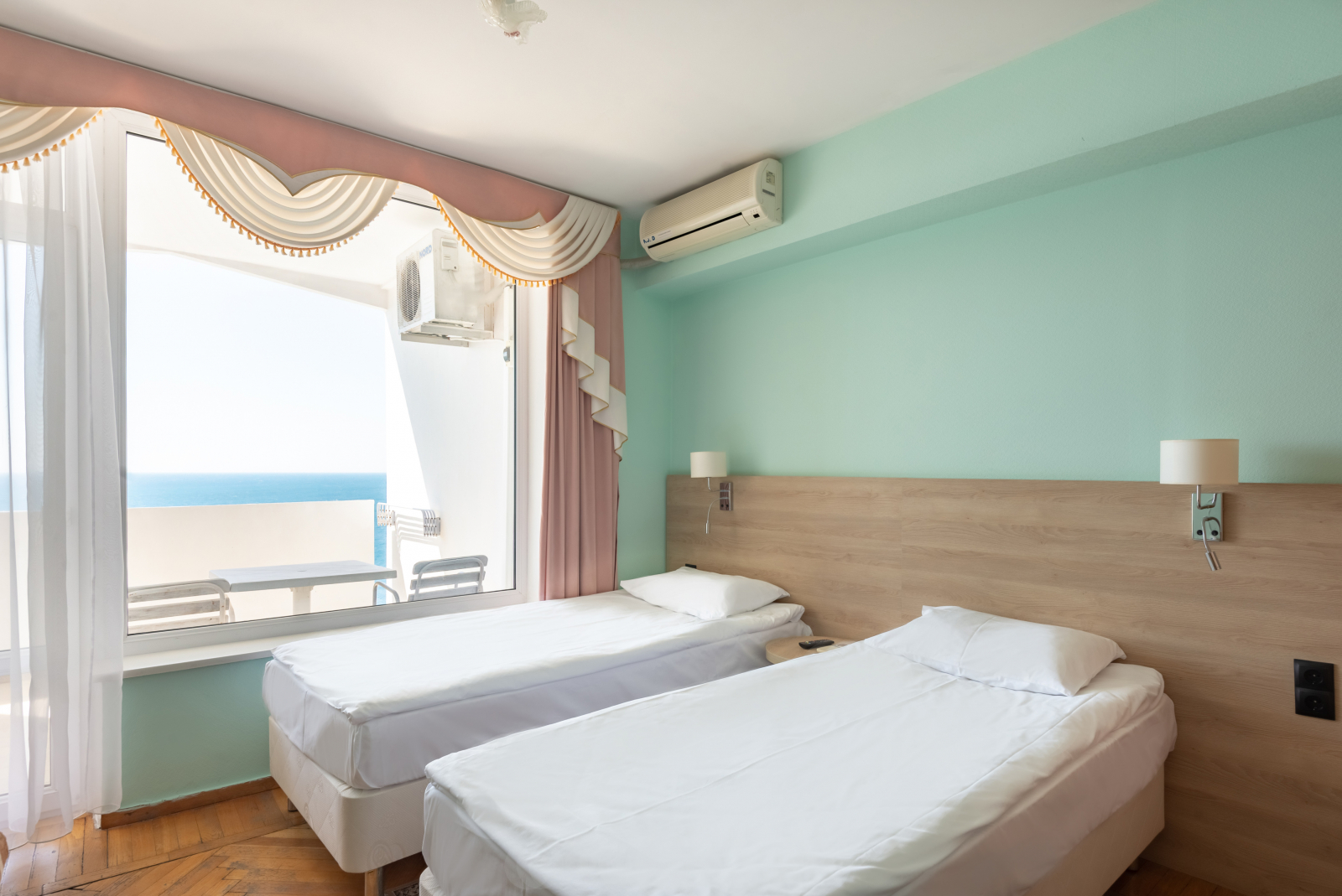 Площадь номера - 32 кв.м. 2 осн. места. 1 доп. место. Балкон. Мебель: вешалка, диван, зеркало, кресло, кровати односпальные /одна двуспальная кровать, прикроватные тумбочки, стол, стулья, шкаф. Оборудование: кондиционер, телевизор, холодильник, чайный набор посуды, электрочайник. Санузел: с душем, туалетные принадлежности, фен. Сервис: Wi-Fi бесплатно, смена полотенец, смена постельного белья, уборка номера.