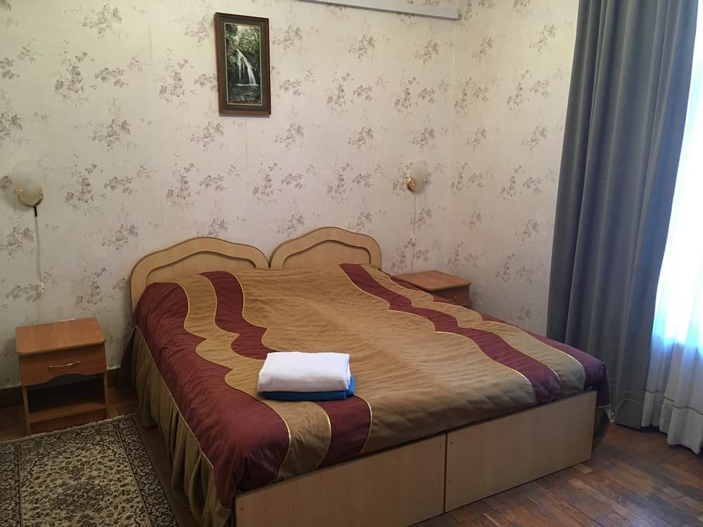 Площадь номера - 42 кв.м. 2 осн. места. 3 доп. места. Мебель: вешалка, диван, зеркало, кровать двуспальная, кровать односпальная, прикроватные тумбочки, стол, стулья, тумба под телевизор, шкаф. Оборудование: кондиционер, телевизор, холодильник, чайный набор посуды, электрочайник. Санузел: с душем, туалетные принадлежности. Сервис: Wi-Fi бесплатно, смена полотенец, смена постельного белья, уборка номера.
